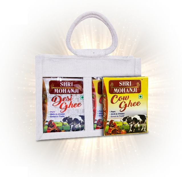Combo Pack: Shri Mohanji 500 ml Desi Ghee & 500 ml Cow Ghee + Free Jute Bag